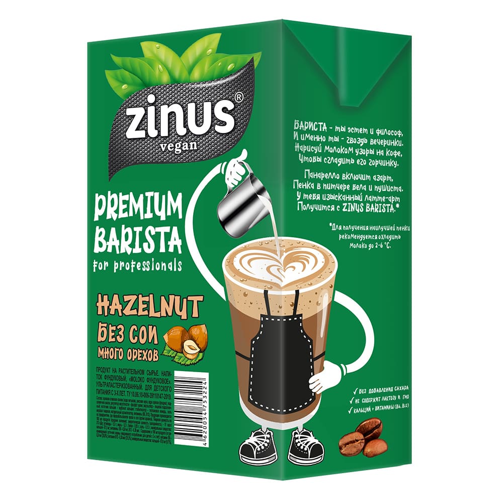 Напиток фундуковый "ZINUS BARISTA" МОLОКО ФУНДУКОВОЕ 3,2%, обогащенный кальцием и витаминами 1л, TBA